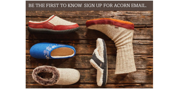 Be the first to know! Sign up for Free to get Acorn Slippers special promotions, exclusive offers and more!