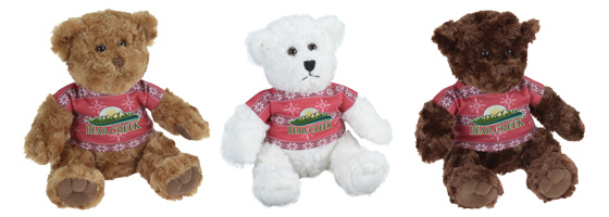 Snag a Free Holiday Teddy Bear in white, brown or dark brown. Each wearing a red holiday pattern shirt.