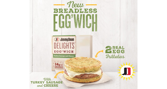Score 2 Free boxes of new Jimmy Dean Delights Egg'wichs! A new breadless breakfast sandwich with with turkey sausage and cheese between two egg frittatas. Yum!