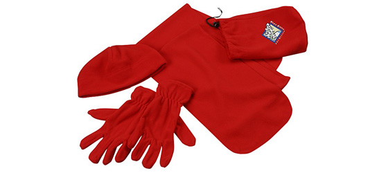 Grab a Free Keep Warm Buddy Set! This fleece set includes a scarf, cap and gloves set in a coordinating bag.