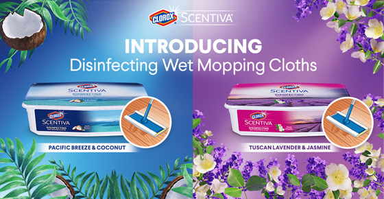 Score Free Clorox Scentiva Disinfecting Wet Mopping Cloths in Tuscan Lavender Jasmine and Pacific Breeze Coconut.