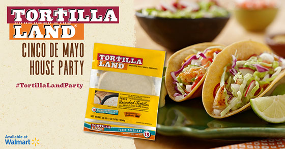 Score a Free TortillaLand Cinco de Mayo Party Pack that includes: Two WalmartGift Cards, Bamboo Inlay Cutting Board and more!