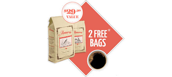 Get 2 Free Bags of Amora Coffee! With this exclusive FREE Coffee offer, you will also receive announcements and information about EXCITING FREE Gifts and more valued at $160! Just pay $2.00