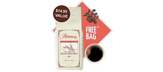 Get a Free Bag of Amora Coffee! With this exclusive FREE Coffee offer, you will also receive announcements and information about EXCITING FREE Gifts and more valued at $160! Just pay $1.00