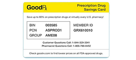 Get a Free GoodRX Prescription Discount Card! Use this card for discounts of up to 80% on most prescription drugs at over 70,000 U.S. pharmacies. Get discounts for