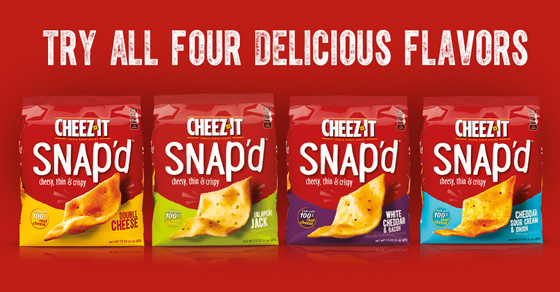 Score Free Cheez-It Snap’d Crackers! Made for munching – they're irresistibly cheesy, delightfully thin and crave-ably crispy with a big, 100% real cheese taste!