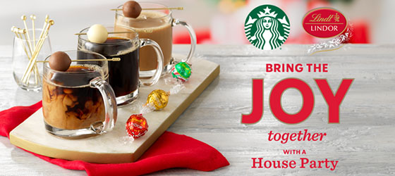 Score a Free Starbucks & Lindt LINDOR Party Pack that includes Starbucks® Holiday Blend Ground Coffee, Starbucks® Peppermint Mocha Flavored Ground Coffee,