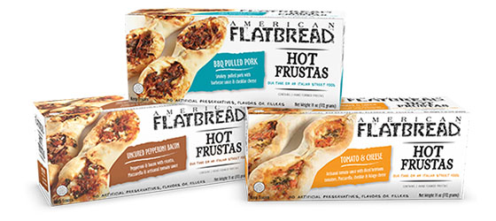 Snag some Free American Flatbread Frustas! 5 delicious varieties: BBQ Pulled Pork, Chicken & Pesto, Tomato & Cheese, Uncured Pepperoni & Uncured Bacon and Sausage, Peppers & Onion with Cheese.Â